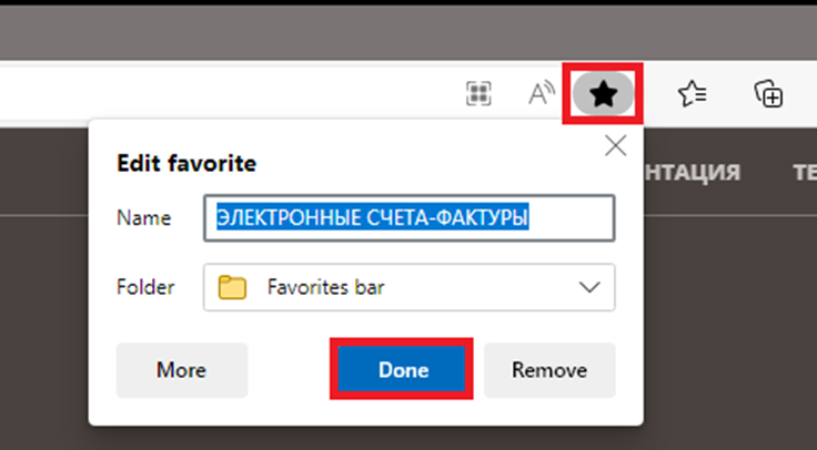 3. Сохранить данный сайт в избранное: нажать рядом со строкой адреса сайта звездочку, а после нажать «Готово».