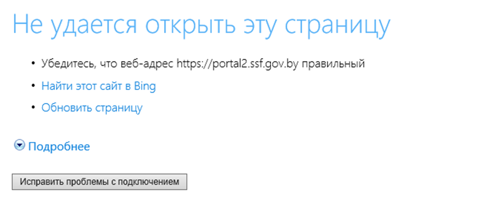 Но в один момент при попытке войти на портал появилась ошибка отображения страницы: