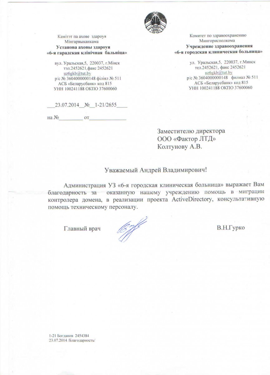 Выражаем вам благодарность за оказанную помощь в реализации проекта Active Directory.