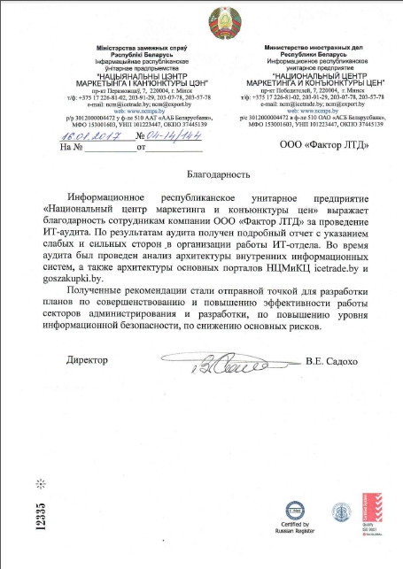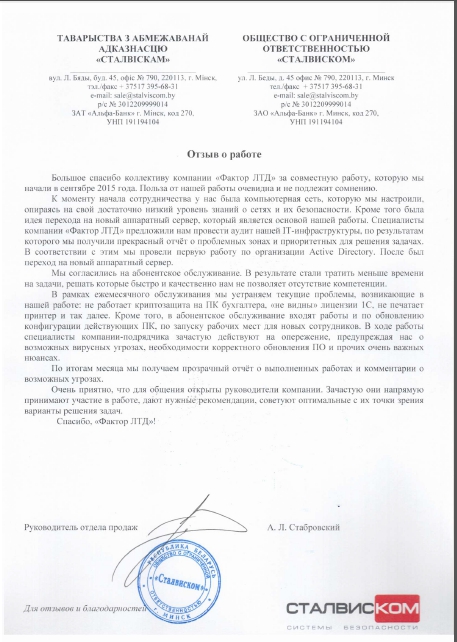 Ваш профессионализм позволил нам быть надежным партнером для наших клиентов.