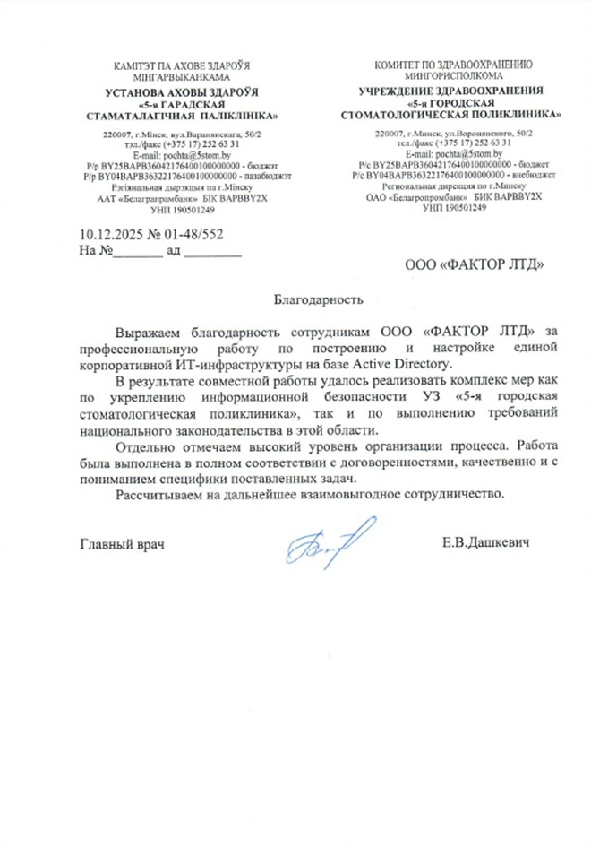 Специалисты ООО «ФАКТОР ЛТД» разработали и реализовали проект по внедрению Active Directory.
